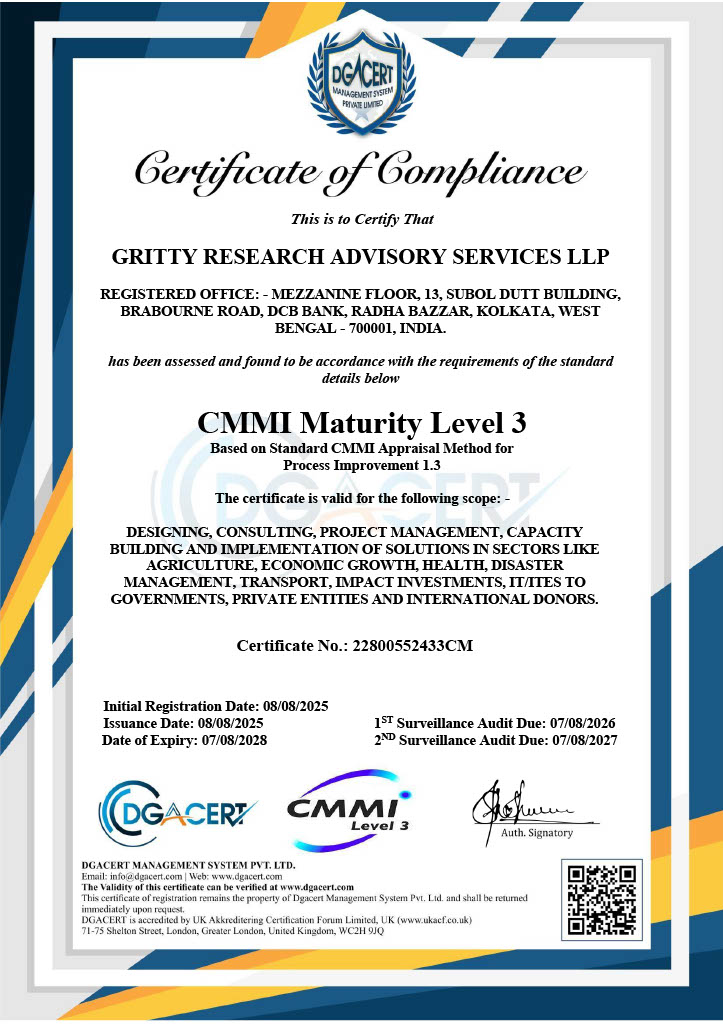 Gritty Research Advisory Services LLP was established with a vision to deliver research-driven advisory services. A small team of experts came together to support governments, public institutions, and non-profits with evidence-based solutions for policy and development.