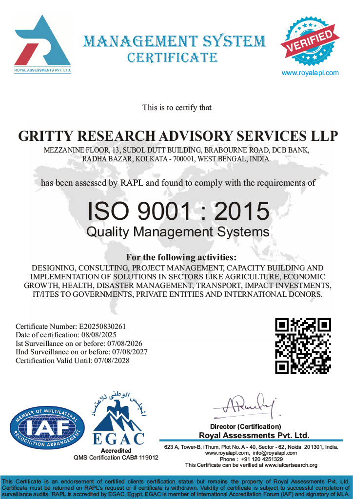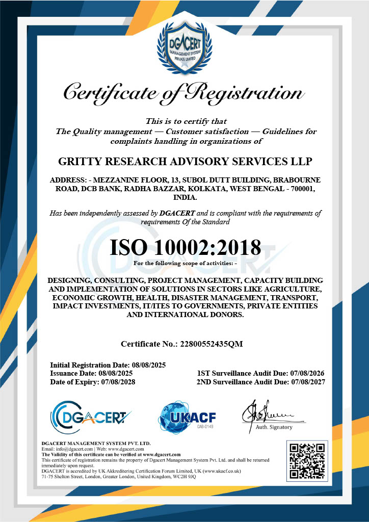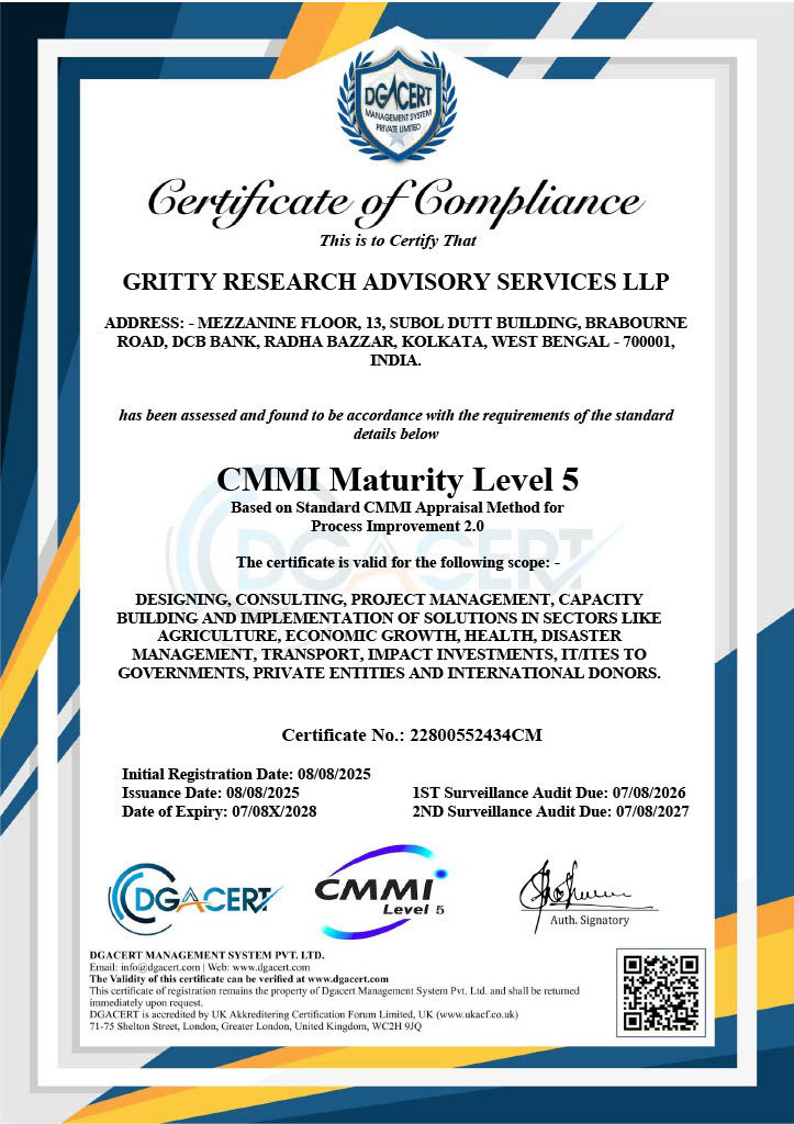 Gritty Research Advisory Services LLP was established with a vision to deliver research-driven advisory services. A small team of experts came together to support governments, public institutions, and non-profits with evidence-based solutions for policy and development.